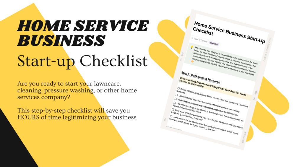 If you just want to focus on providing the best service, while ensuring that your business is able to have longevity by staying legally "above board", this checklist will help alleviate a ton of growing pains when starting your cleaning, lawncare, pressure washing, window washing, or any other home maintenance business!